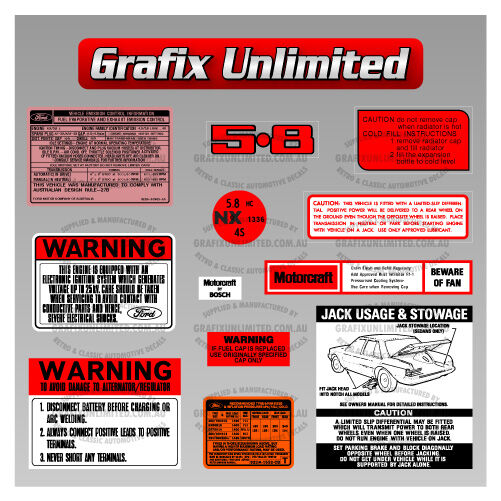 XE Falcon ZK Fairlane 5.8 Full Restoration Sticker Kit.