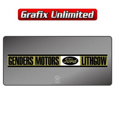 Genders Motors Lithgow Dealership Decal. Internal application.