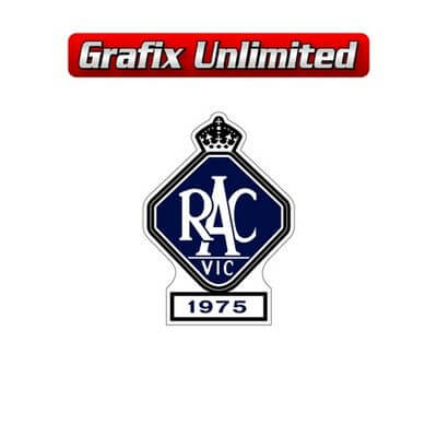 RACV Decal to suit year 1975. Printed on to clear adhesive internal application.