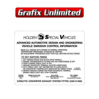 Emission Decal to suit VP 5000 V8. Part Number 22B-121909.